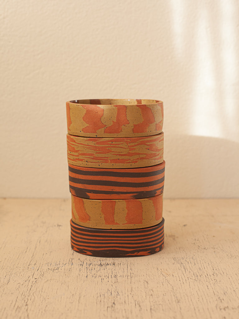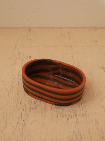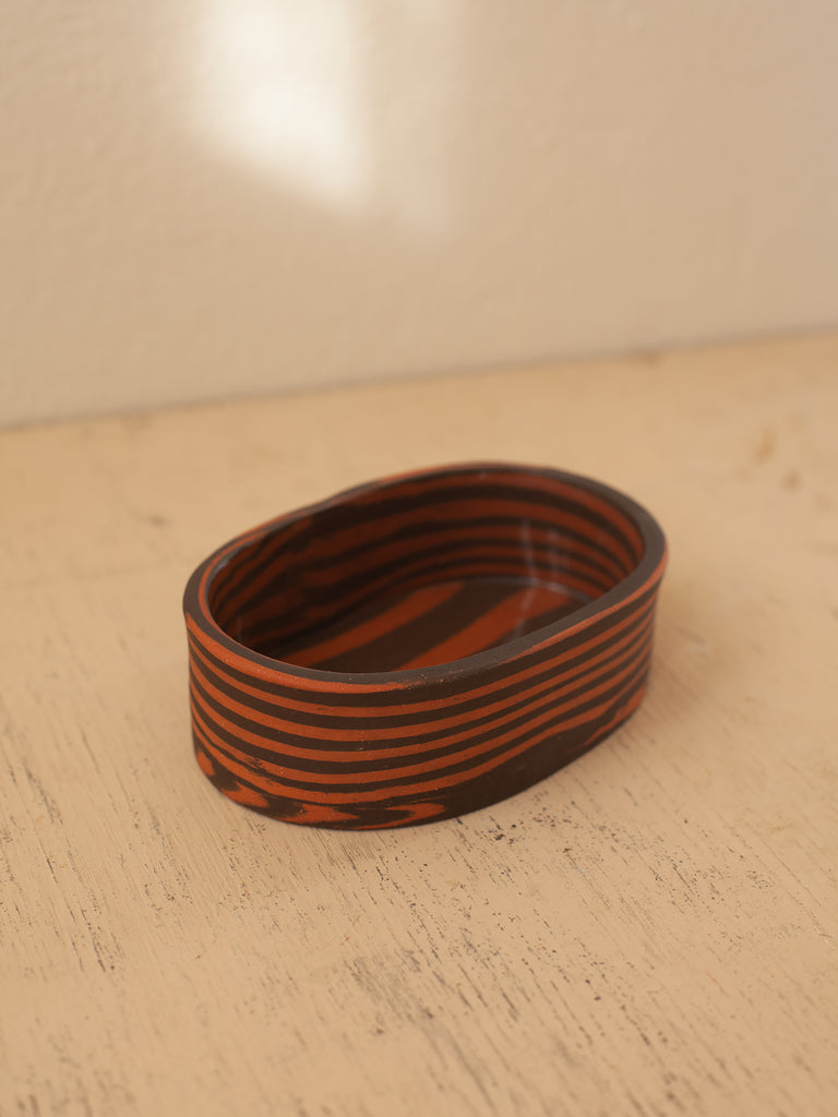 Small ceramic dish for snacks or trinkets. Slab-built from two contrasting stoneware clays layered together to create a one-of-a-kind design.