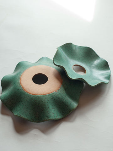 The Ruffle Lamp is a plug-in pendant, slab-built in stoneware clay. Custom hardwired option available.